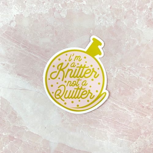 I’m a knitter not a quitter cute vinyl small sticker design